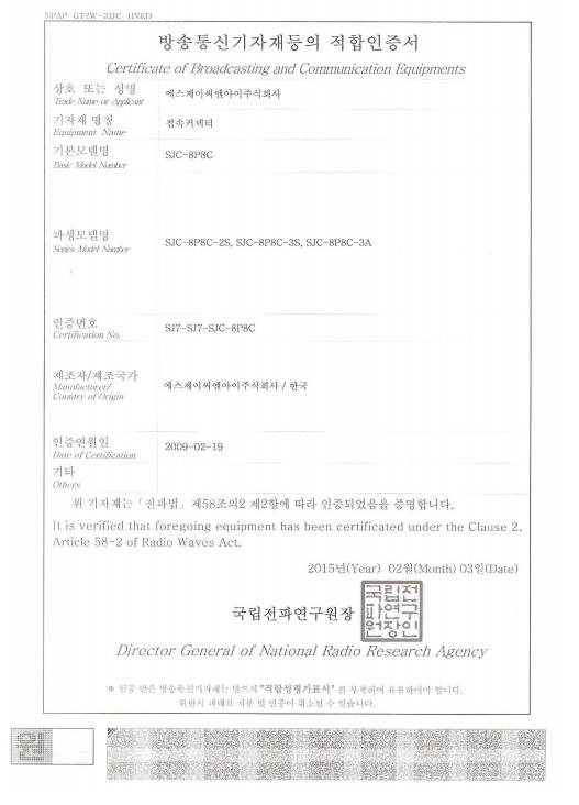 RJ-45(SJC-8P8C, SJC-8P8C-2S, SJC-8P8C-3S,SJC-8P8C-3A)ÀûÇÕµî·ÏÇÊÁõ